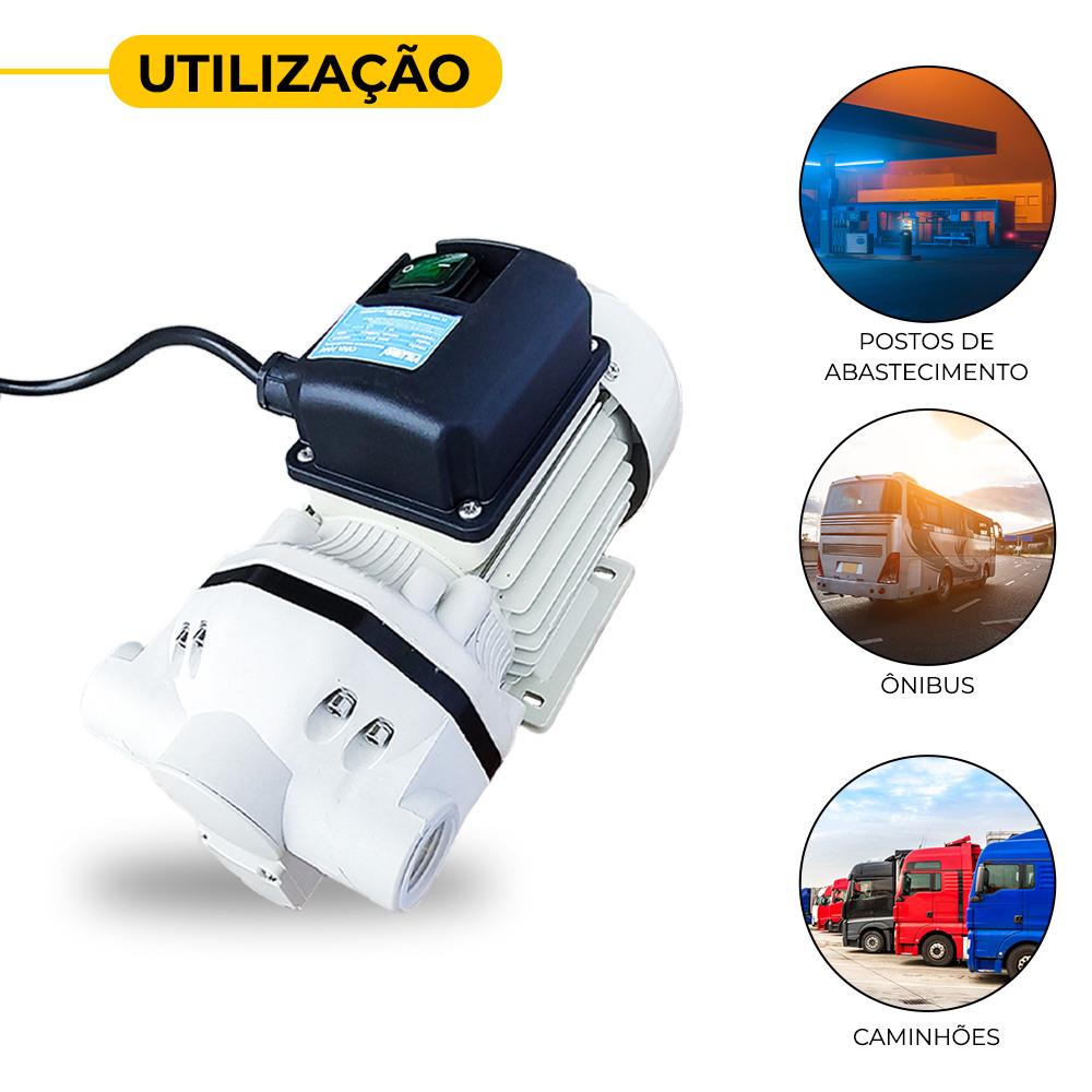 Bomba de Abastecimento para ARLA 32 (220V). Potência de 330W e vazão de 40 L/min. Atenção: Uso restrito a ARLA 32. Não utilize com diesel, gasolina ou outros inflamáveis.