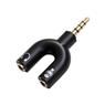 Adaptador P3 macho para duas saídas P2 fêmea, ideal para separar áudio e microfone em dispositivos compatíveis.