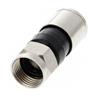 Conector coaxial tipo F com compressão, indicado para terminação segura de cabos coaxiais em instalações de TV, antenas e sistemas de sinal, garantindo melhor fixação e menor perda de sinal.