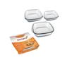 Características: Conjunto com 3 peças, vidro temperado resistente a variações térmicas, formato quadrado, indicado para forno, micro-ondas e geladeira, fácil higienização