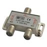 Divisor de sinal coaxial tipo F 2 vias com power pass, ideal para distribuir sinal de TV, antena ou satélite com eficiência e compatibilidade ampla de frequência.