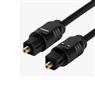 Cabo óptico de áudio digital com conectores padrão TOSLINK macho em ambas as extremidades, indicado para transmissão de áudio digital com alta fidelidade.