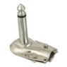 Conector plug P10 macho mono em ângulo de 90°, indicado para montagem ou reparo de cabos de áudio, oferecendo melhor acomodação em espaços reduzidos e menor esforço sobre o cabo.