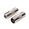 Adaptador Coaxial Tipo F Macho para Conector RF Fêmea indicado para ligação entre cabos coaxiais e equipamentos de TV, antenas e receptores, garantindo conexão segura e boa condução de sinal.