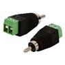 Kit com 5 conectores RCA macho com borne de parafuso, indicados para instalações de CFTV, permitindo conexão rápida e segura de sinais de vídeo analógico sem necessidade de solda.