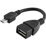 Adaptador OTG Micro USB Macho para USB A Fêmea com cabo curto, ideal para conectar pendrives, teclados, mouses e outros periféricos USB a smartphones e tablets compatíveis com função OTG.