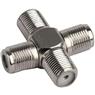 Adaptador divisor coaxial tipo F macho 4 vias, ideal para interligar ou distribuir cabos coaxiais em instalações de TV, antena e sistemas de sinal.