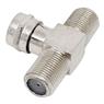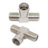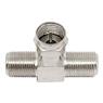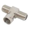 Conector Adaptador Coaxial Tipo T Fêmea x Macho ideal para dividir ou adaptar conexões de antena e TV a cabo, garantindo encaixe firme e boa condução de sinal.