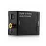 Adaptador conversor de áudio analógico para digital, ideal para transformar sinais RCA ou P2 em áudio óptico digital com alta qualidade sonora.