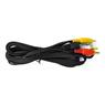 Cabo de áudio e vídeo com conector P3 macho para 3 conectores RCA macho, comprimento de 5 metros, indicado para transmissão de sinal de áudio estéreo e vídeo composto.