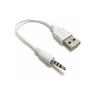 Cabo USB macho para P3 macho na cor branca, indicado para alimentação ou transmissão de áudio em dispositivos compatíveis, com design compacto e prático para uso diário.