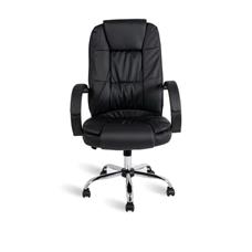 Cadeira Escritório Presidente Estofado Giratório Regulável com Suporte Couro Sintético Preto