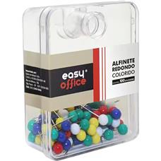 Alfinete Redondo Colorido Easy Office - 100 Unidades